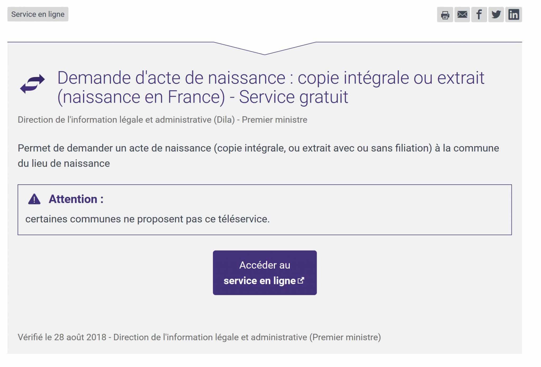 Demande d’acte de naissance d’une personne née en France